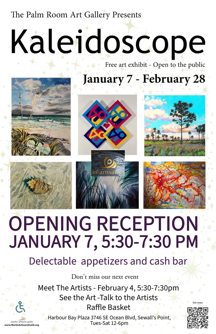 Make a New Year’s resolution to bring more fulfillment into your life by joining us on January 7, from 5:30 to 7:30 pm to experience this inspiring display of creativity hosted by The Palm Room Art Gallery and created by talented Martin Artisans Guild artists. Enhance your inner artist with dozens of beautiful artworks while enjoying snacks and a selection of beer, wine, and non-alcoholic drinks from our cash bar.