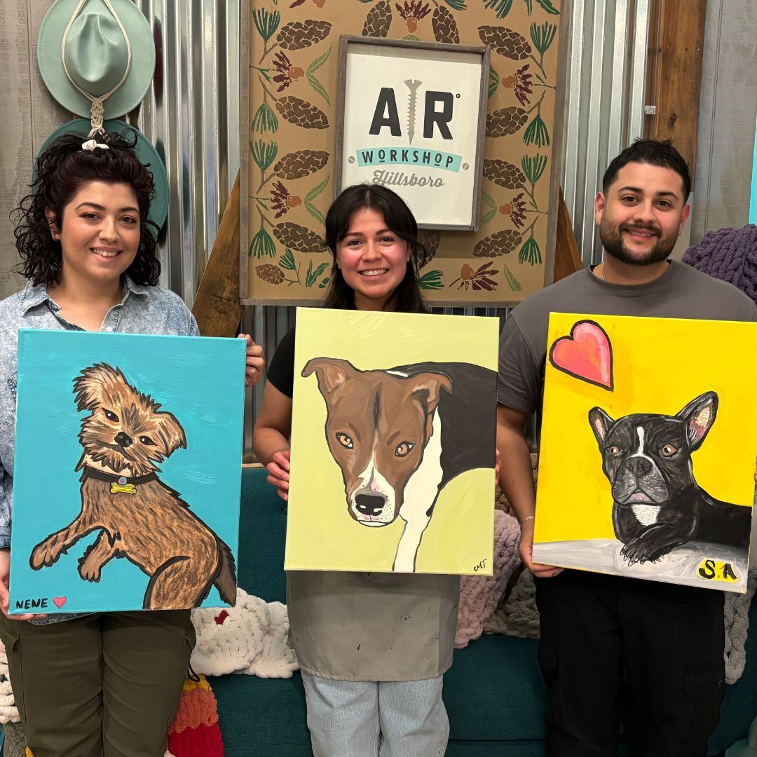 In this creative and relaxed class, you’ll paint a custom portrait of your beloved pet on canvas — no artistic experience needed! Our team will pre-sketch your pet’s outline so you can focus on adding color, personality and flair