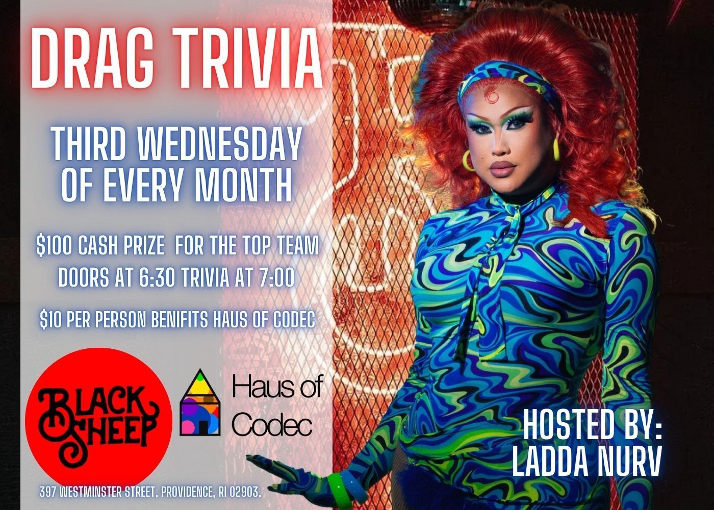 Join us for Drag Trivia at Black Sheep Providence with Ladda Nurv !!