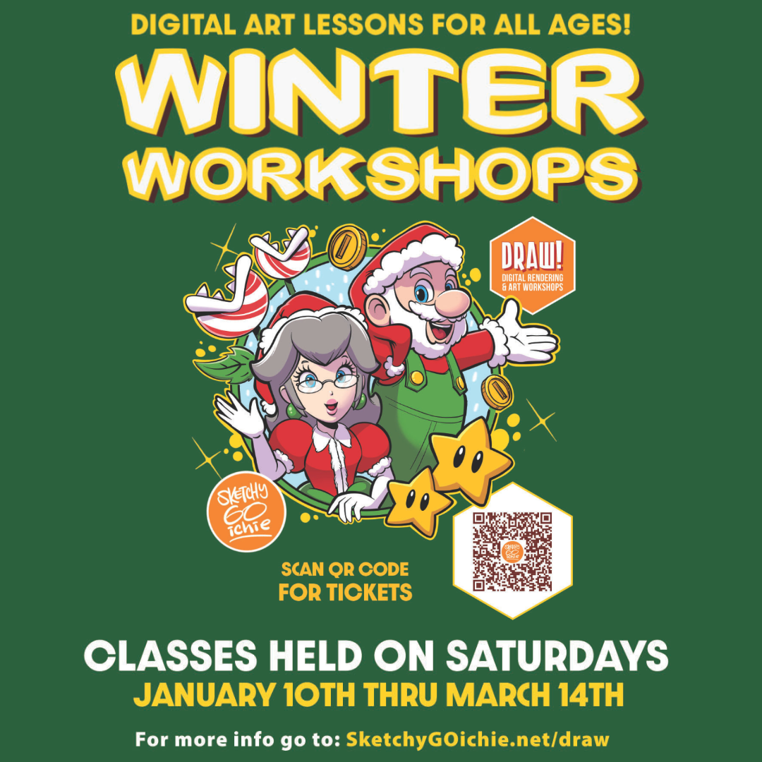 Discover the magic of digital art in our SketchyGOichie DRAW! Winter Workshops! Designed for kids aged 7 and up, our 10-week program brings professional illustrators and art educators together to inspire young artists. No matter the skill level, every child can explore their creativity and learn how to use industry-standard tools for drawing on iPads!