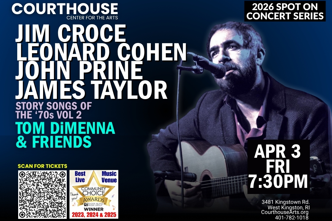 We can’t Keep It In, we gotta let it out — so just relax, and take it easy at our Spot On Concert Series with Tom DiMenna. Find a Girl, come on down, and grab your Leroy Brown as Tom returns with a new chapter in his Story Songs of the ’70s series, featuring the words and melodies of such singer-songwriters as Jim Croce, Leonard Cohen, John Prine, and James Taylor. Hallelujah!