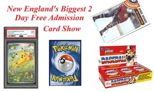 New England’s Biggest 2 Day Free Admission Card Show, Emerald Square Mall, North Attleboro. Saturday, April 11 from 10 to 7:30 and Sunday, April 12 from 10 to 5. Buy-Sell-Trade old and new sports cards, autographs, sports memorabilia, Pokemon and other TCG cards & collectibles, free learn to play Pokemon table,. 272 Vendor Tables. Autograph Guest that Sunday: Hockey Hall of Famer Serge Savard. Presented by Cardboard Promotions & Hometown Collectibles