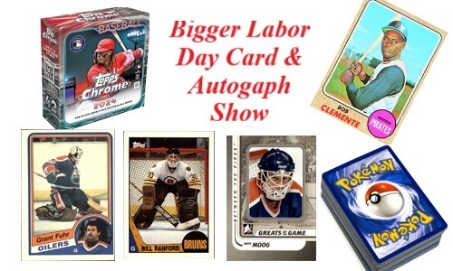Cardboard Promotions Bigger Labor Day Card Show, Monday, September 1, enVision Hotel, Mansfield, 8:30 am to 3 pm, expanded to 107 Vendor Tables, Buy-Sell-Trade old & new sports card & memorabilia, Pokemon cards, $4 admission, under 16 free, free after 1:15 pm, free hourly door prizes. Autograph Guests: Stanley Cup Champs Grant Fuhr, Bill Ranford and Andy Moog. Rt. 95 to Exit 13A to Forbes Blvd., since 1991