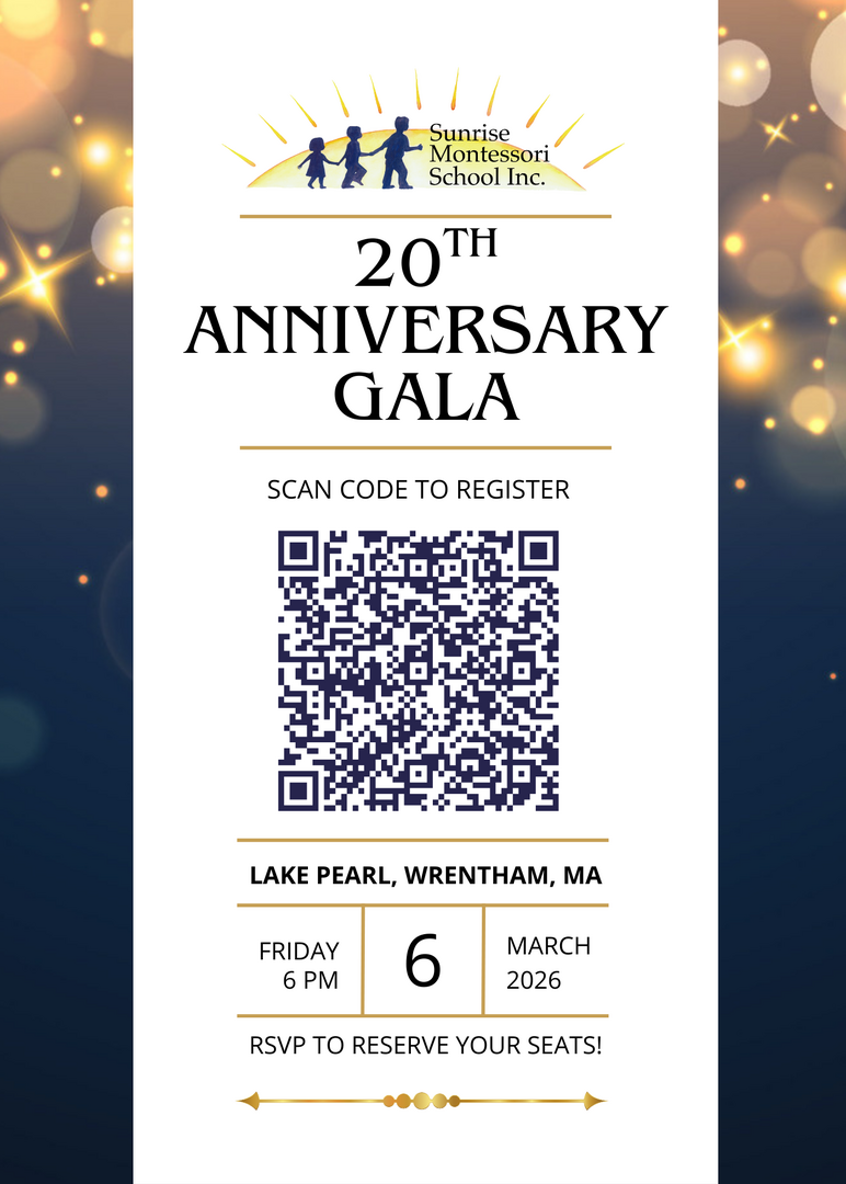 Sunrise Montessori School is proud to celebrate our 20th anniversary. This milestone is a testament to the dedicated network of families, founders, educators, and community members who have supported our mission and passion. Everyone’s invited! Bring a friend, come as a group, or share the invite even if you can’t attend - it takes a village to build our future, and the whole village is welcome!