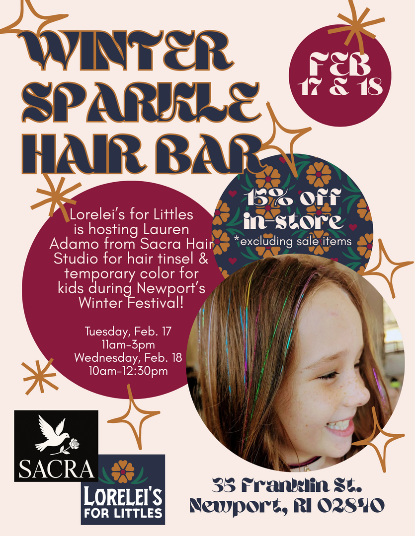 Get festive with color and sparkles during Newport’s Winter Festival at the Winter Sparkle Hair Bar hosted by Lorelei’s for Littles.