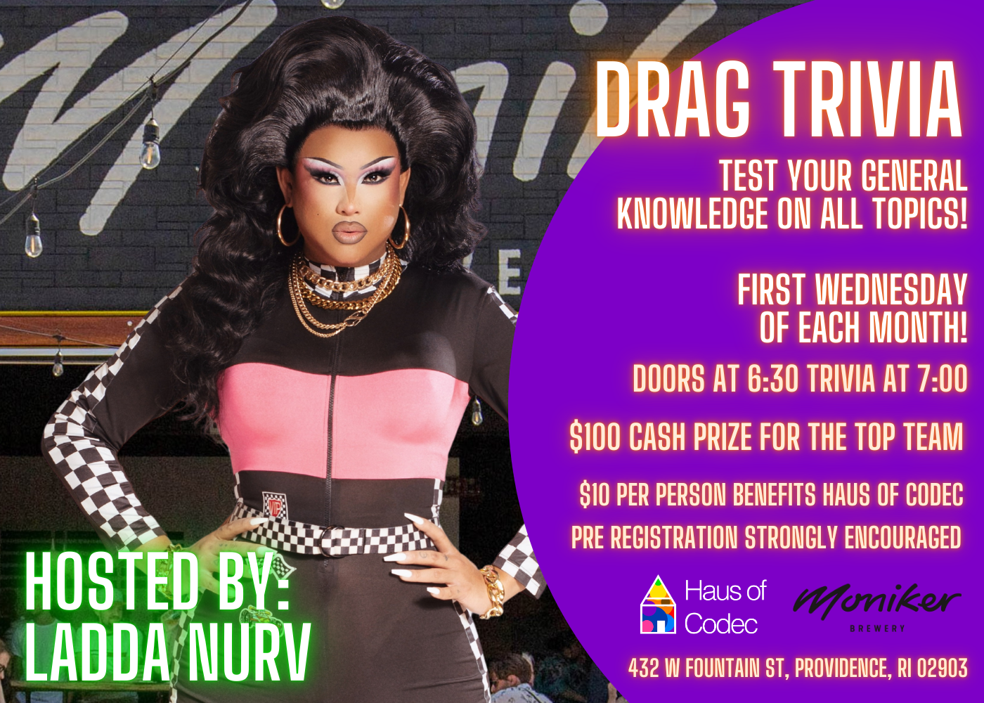 Join us for Drag Trivia at Moniker Brewery with Ladda Nurv !!