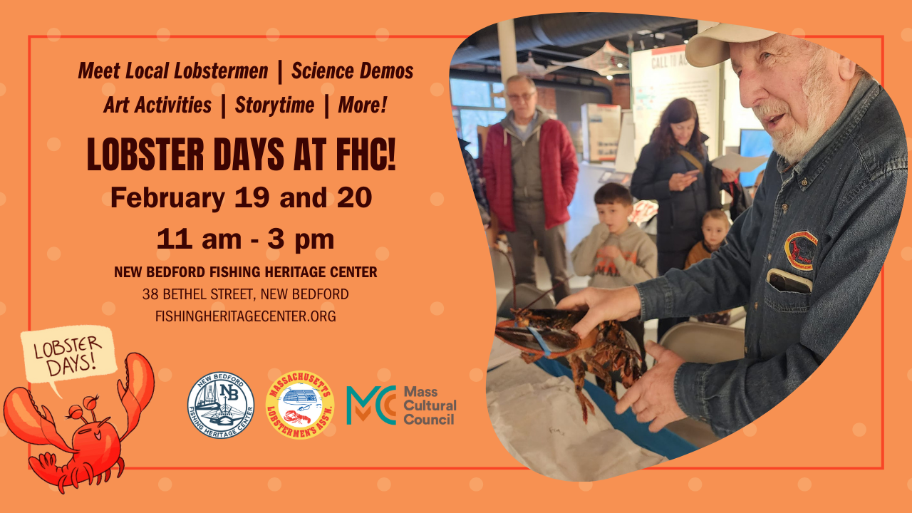 This family-friendly event is designed to educate the public and local youth about Massachusetts’ commercial lobster industry. Associated activities include demonstrations and talks by working lobstermen, story time, lobster-themed crafts, and more. Lobster Days 2026 will take place on Thursday, February 19 and Friday, February 20 from 11:00 am until 3:00 pm. Admission to the Center is free on both days of the event.