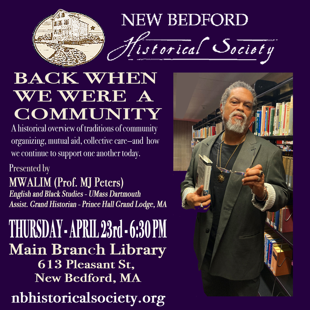 Join the New Bedford Historical Society for an engaging and thought-provoking talk centered on the history and practice of organizing and mutual aid within Black communities in Massachusetts, with key connections to New York and Philadelphia. Back When We Were A Community traces a powerful lineage from the 18th and 19th centuries—when free and enslaved Africans built networks of care, resistance, and collective survival—through to present-day traditions of cooperation and cultural resilience. Presented by Mwalim (Prof. MJ Peters)