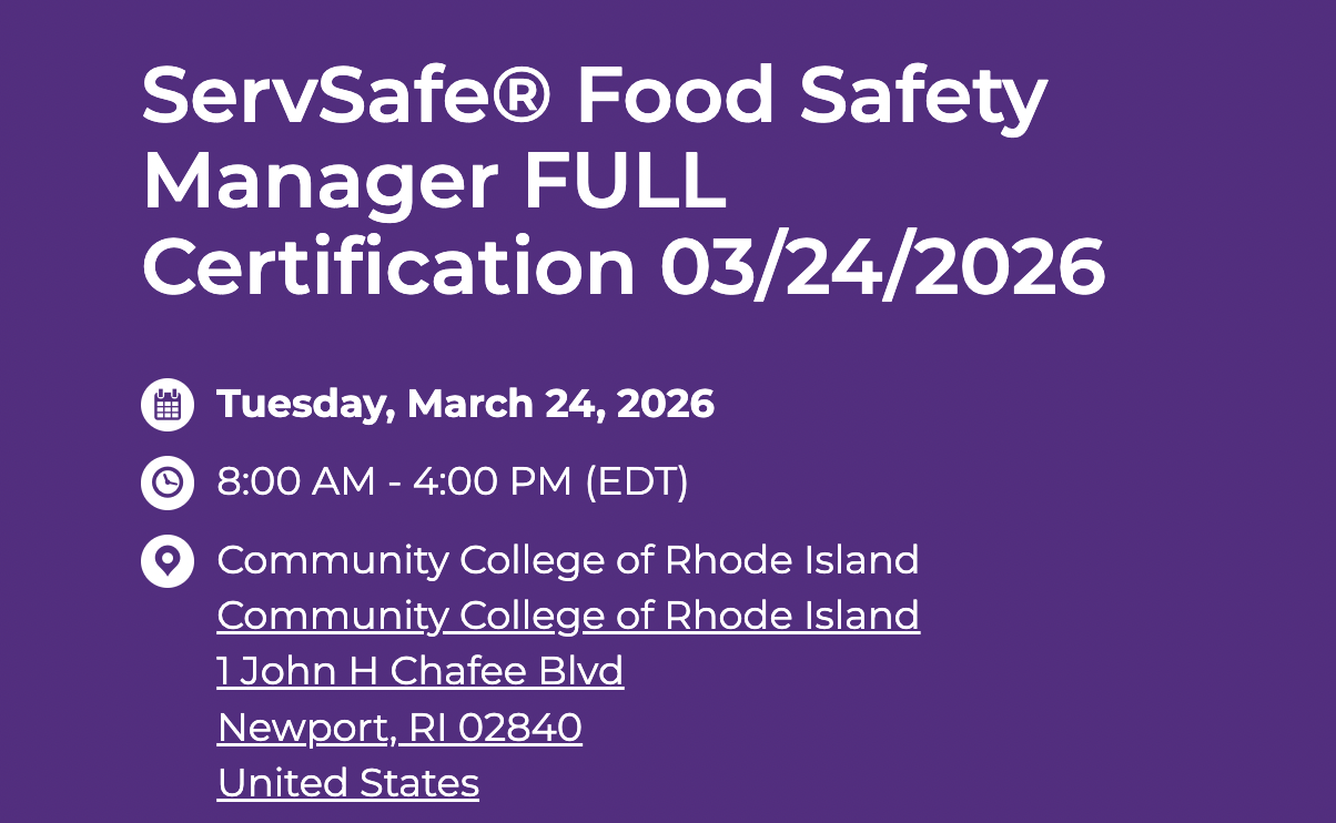 The course is recognized by the RI Department of Health and fulfills state requirements for food safety certification.