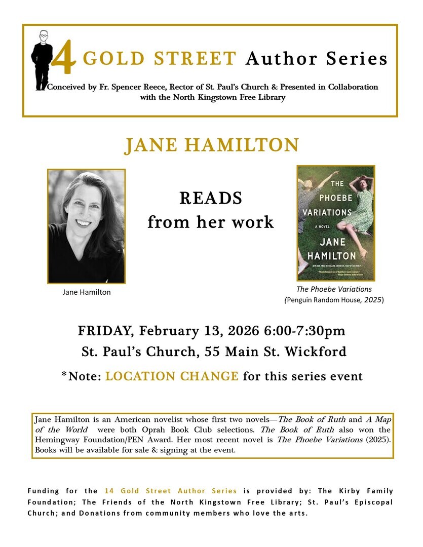 Jane Hamilton is an American novelist whose first two novels—The Book of Ruth and A Map of the World were both Oprah Book Club selections. The Book of Ruth also won the Hemingway Foundation/PEN Award. Her most recent novel is The Phoebe Variations (2025). Books will be available for sale & signing at the event.