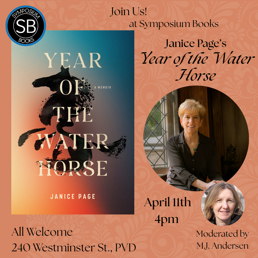 Join us on April 11th at 4pm as we host Janice Page in conversation with M.J. Andersen to discuss her new memoir, Year of the Water Horse. Signed copies of the book will be available for purchase!