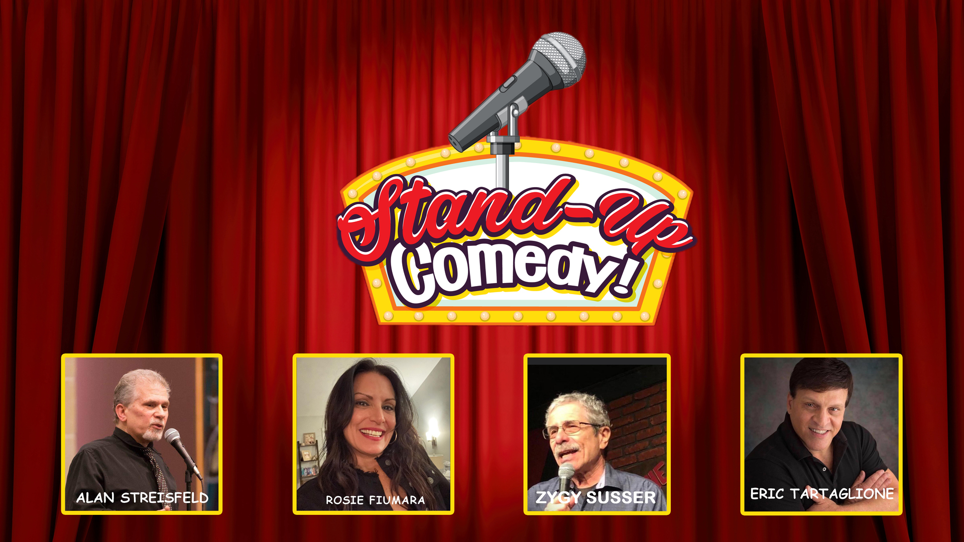 About the Wilshire Comedy Group: The Wilshire Comedy Group is an entertainment production company based in Oakdale, Queens that specializes in producing stand-up comedy shows at various venues throughout the tri-state area. Get more details about the featured performers — Alan Streisfeld, Rosie Fiumara, Zygy Susser, and Eric Tartaglione — on our website!