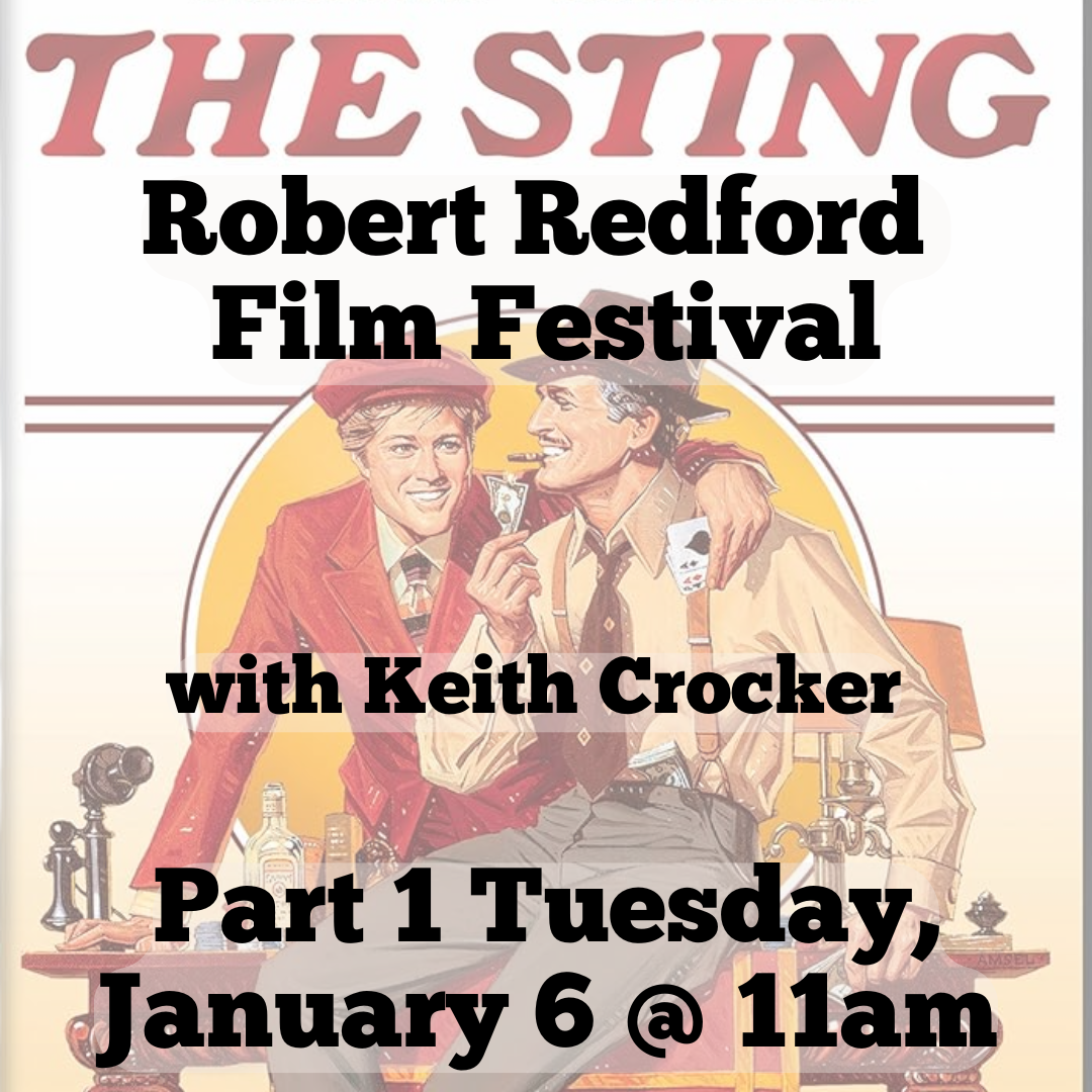 Robert Redford was an academy award winning actor, producer and director. He began his career on television in the late 1950's, and started acting on Broadway in the mid 1960's. By the late 60's he became a star of the motion picture screen, and a heartthrob. Two of his 70's era films, The Sting (1973) and Three Days of the Condor (1975) will be shown. Mr. Crocker will give a concise history on Redford and introduce both films. Be here to help pay tribute to this wonderful contributor to the arts and humanities.
