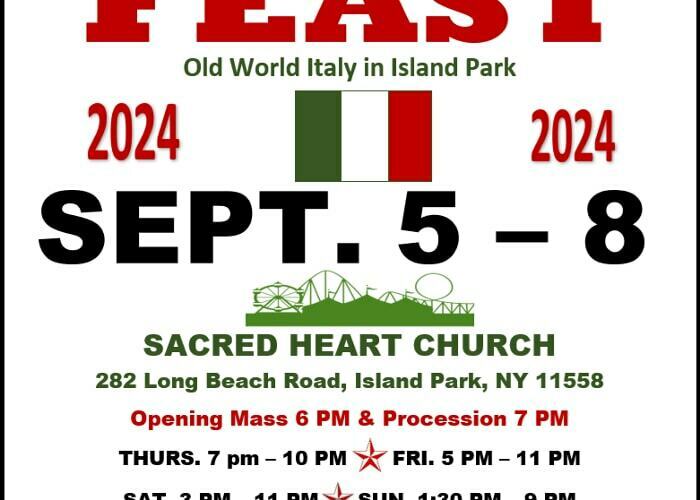 We request your help in publicizing our 54th Annual San Gennaro Feast at Sacred Heart Church on Long Beach Road in Island Park, Long Island. The dates of our family-friendly Feast are: