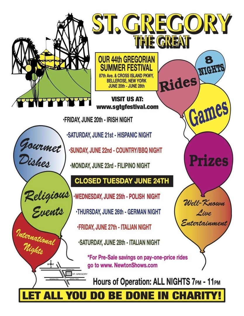87th Avenue & Cross Island Pkwy, Bellerose, N.Y. FREE admission Eight nights of live entertainment * Rides * International Food * Games