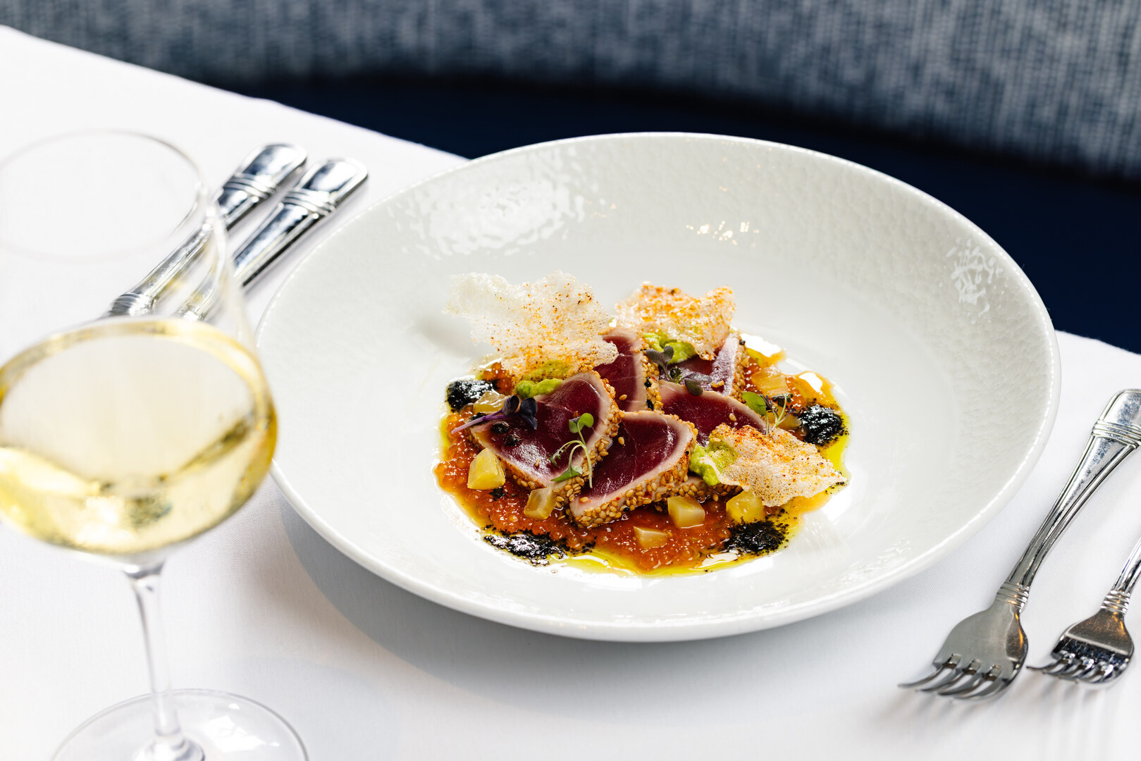 Begin your experience with exquisite selections such as Asparagus Salad with frisée, bacon lardon and sauce gribiche; classic Shrimp Cocktail accompanied by charred lemon; or Crispy Oysters presented over locally-sourced Coldwater Creek grits with candied bacon marmalade.