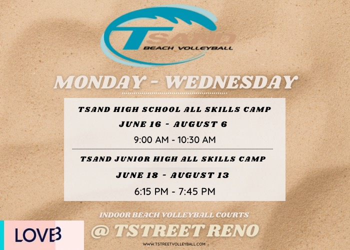 Tsand trains out of the only indoor beach courts in Reno. Visit www.TstreetVolleyball.com for more information.