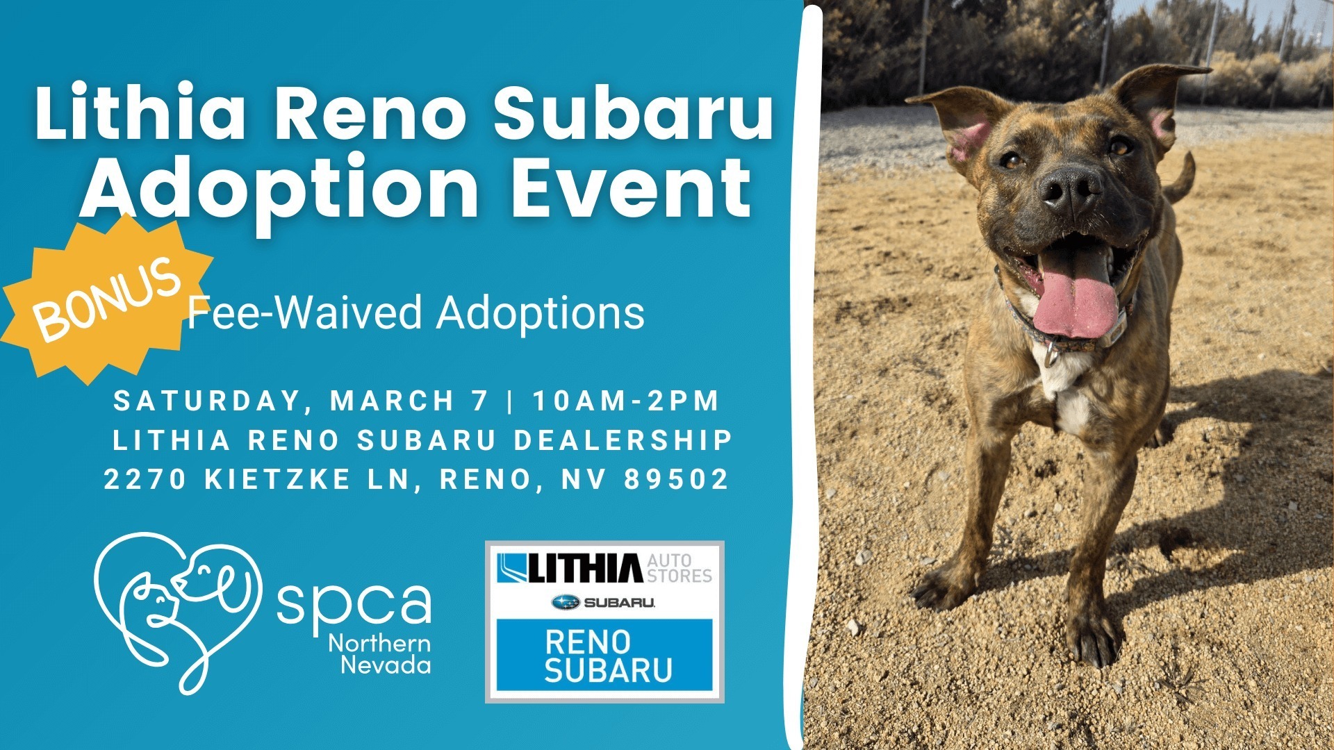 ADDITIONAL FEE-WAIVED ADOPTION EVENT WITH Lithia Reno Subaru!