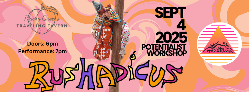 Join us for Rushadicus (The Cello Goblin!) featuring cello performance art at Under The Mountain. All tickets include a tour of the new three-floor immersive as well as an epic goblin concert. Peachy Queens Traveling Tavern will have delicious drinks in the Dorothy Bar. Lounge in the outdoor sculpture garden, explore the interactive immersive space and revel in the chaotic merriment of Rushadicus!