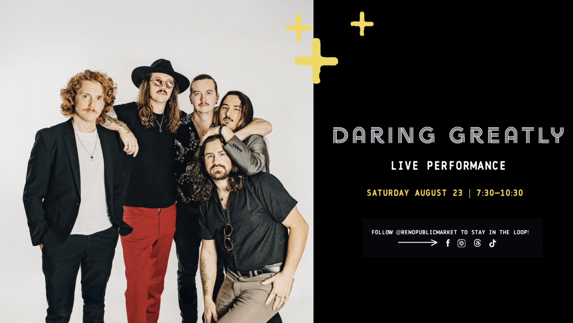 Daring Greatly is a harmony-rich rock band originally from Calgary, Alberta, now based in San Diego. Known for blending Americana, folk, and rock influences, they’ve played over 1,000 shows across North America and earned accolades like the 2023 San Diego Music Awards’ Song of the Year. Their heartfelt storytelling, powerful vocals, and evolving sound continue to resonate with fans across generations.