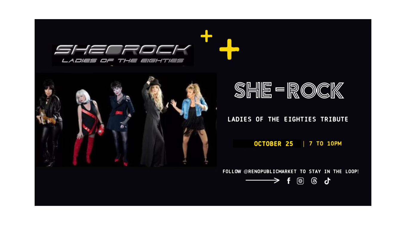 Event Link - https://www.renopublicmarket.com/events/she-rock-ladies-of-the-eighties-tribute-night-2
