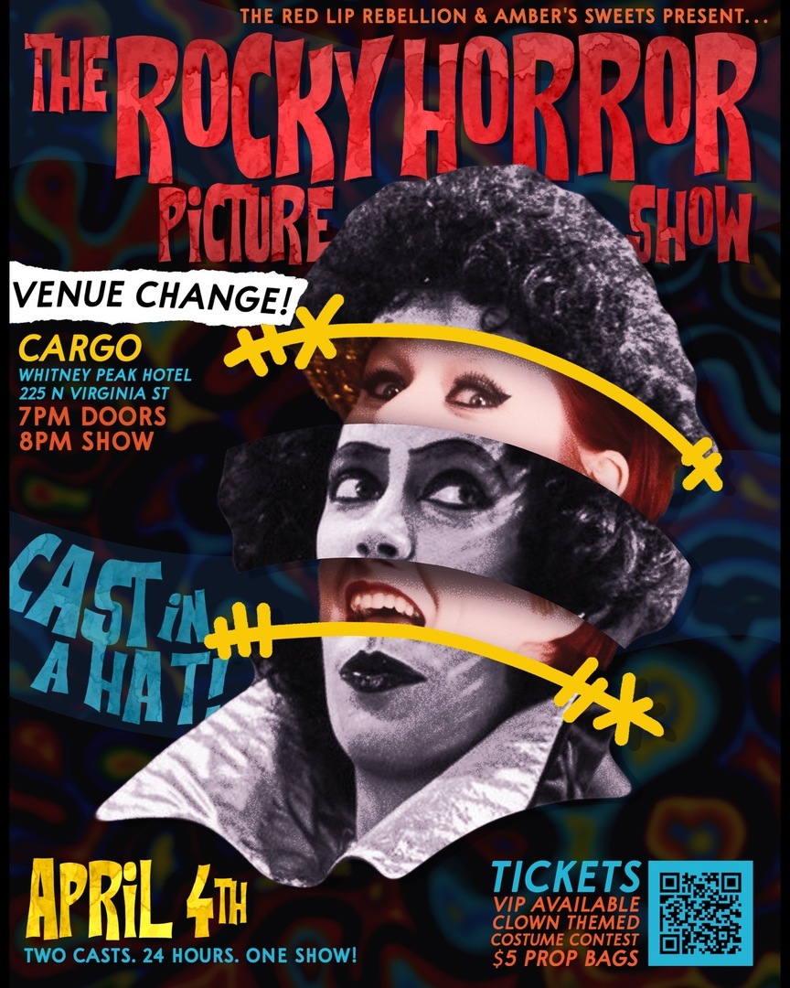 🎩✨Ever wanted to see two shadow casts collide for one night of absolute madness? Well babies, don’t you panic! Sacramento’s own @amberssweetsshadowcast and Reno’s @renorockyhorror have cum to provide! ❤️⛰️🎰 We’re crossing state lines for some serious April-foolishness. 🤡💦 We’re RANDOMIZING THE ROLES via blind draw from a hat less than 24 hours before the show!😱 Two casts, one stage, and pure adrenaline!