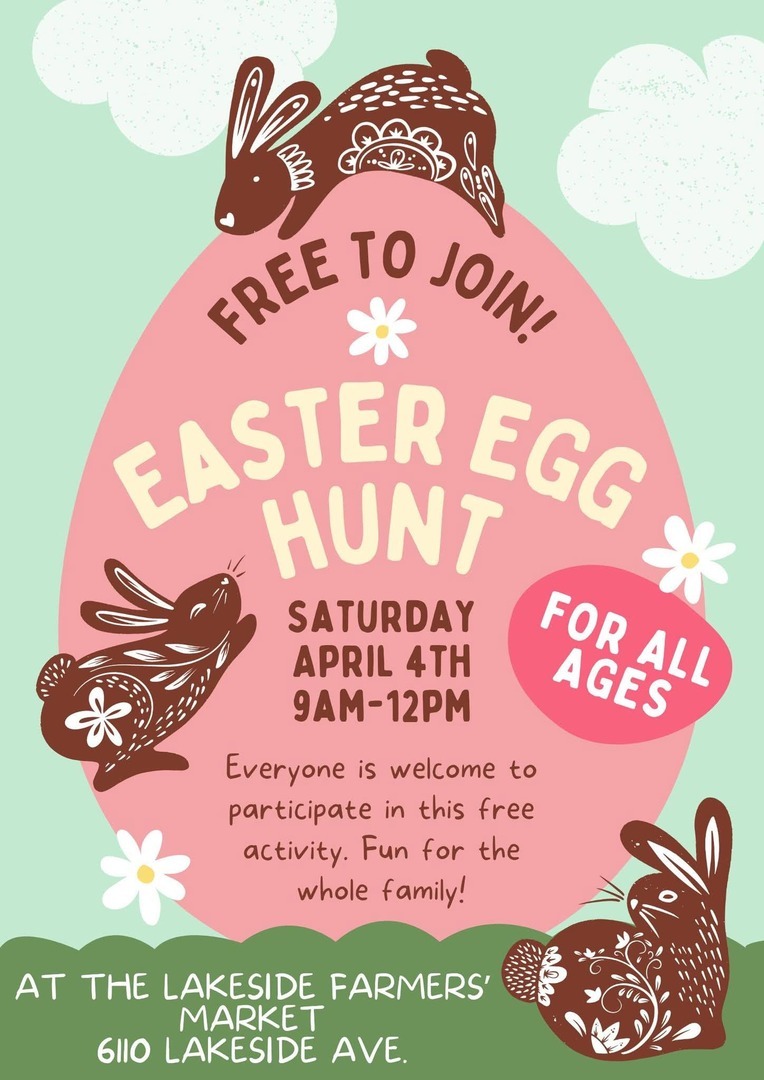 Bring the whole family out for some BIG fun on Saturday, April 4th 9am-12pm at the Lakeside Farmers' Market! Hunt for eggs, shop local, and enjoy the magic of Lakeside RVA in its Spring glory!