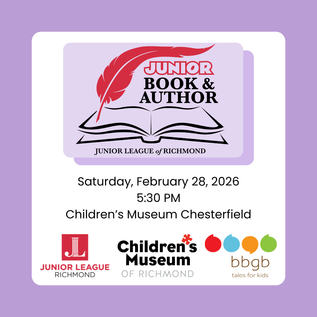 The Junior League of Richmond and the Children's Museum invite you to be a part of this children’s literary event as we celebrate the 11th Junior Book & Author Event on Saturday, February 28, 2026 at the Children’s Museum Chesterfield at 5:30 PM.