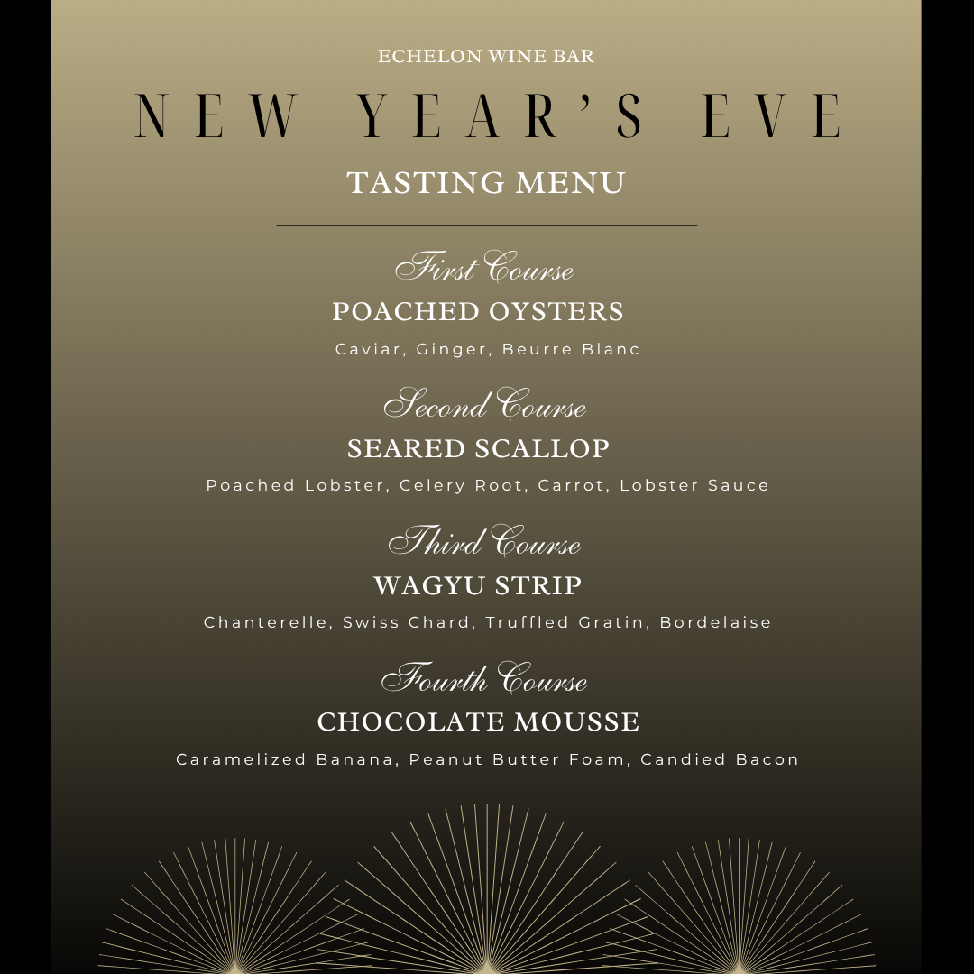 Ring in 2026 with an elegant four-course celebration from Chef Thomas including Poached Oysters Seared Scallops, Wagyu Strip and Chocolate Mousse and a welcome glass of Champagne. Curated wine pairings are available as an optional add-on for $30 per person. Join us for a festive evening of great food, wine, and hospitality.