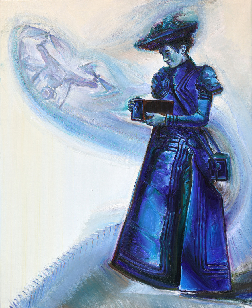 In this new exhibition, Myers addresses his diverse interests through juxtapositions in his distinctive, colorful style. His primary themes center on both natural and human-made environments, and how individuals relate to those settings. Myers introduces nature as an integral part of each painting, depicting elements within the borders and confines of different figures, forms of technology, and everyday objects. Myers was raised in a photojournalistic environment; both his parents are photographers and, with the guidance of Ansel Adams in their early stages of photographing, they amassed a visual archive of 700,000 transparencies of the west and its people. Myers himself has been published by National Geographic, National Wildlife, Animals Magazine of London, and many other publications. His depictions of various models of cameras within this exhibition reflect his extensive experience behind the lens.
