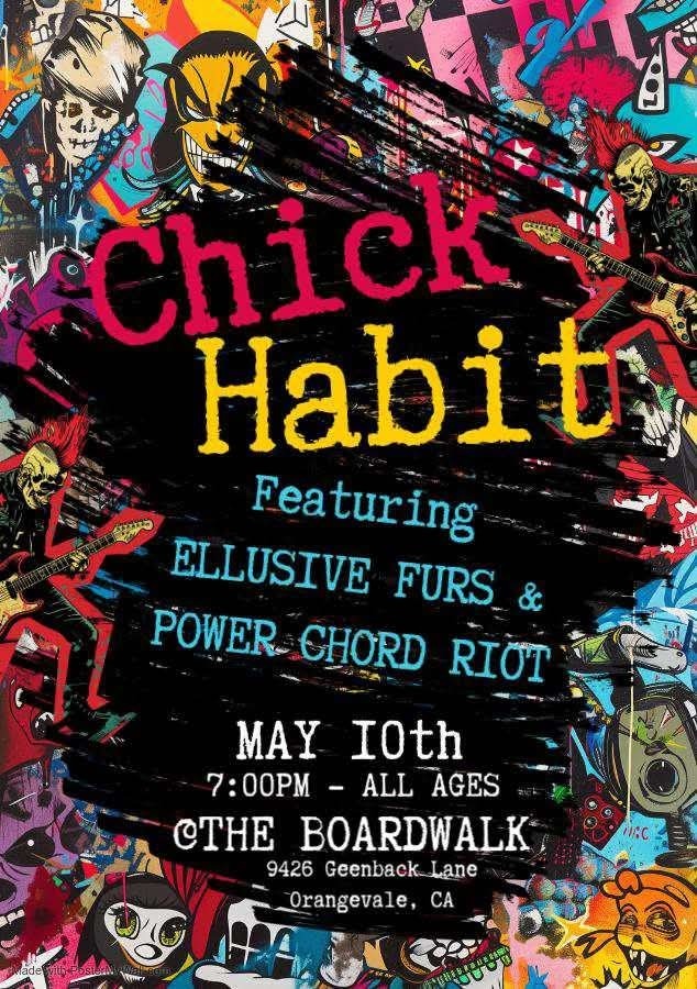 HomeEventsPower Chord Riot with Chick Habit and The Ellusive Furs This Event has Passed Power Chord Riot with Chick Habit and The Ellusive Furs Saturday, May 10, 2025 6:00 PM - 11:59 PM 6:00 PM - 11:59 PM See all dates and Times The Boardwalk Parking Deals Get a Ride LYFT UBER Add to Calendar 05/10/2025 06:00 PM 05/10/2025 11:59 PM America/Dawson Power Chord Riot with Chick Habit and The Ellusive Furs Power Chord Riot with Chick Habit and The Ellusive Furs at The BoardwalkEvent LinksFacebook: https://go.evvnt.com/2960961-0 Details & Tickets: https://www.upcomingevents.com/sacramento/events/the-boardwalk/power-chord-riot-with-chick-habit-and-the-ellusive-furs-416506?ref=uceaddevent The Boardwalk, 9426 Greenback Lane, Orangevale, CA, 95662 Set Reminder Categories Concert, Live Performance Neighborhoods American River Canyon (Folsom)American River Canyon North (Folsom)Historic Folsom (Folsom)Natoma Station (Folsom) Power Chord Riot with Chick Habit and The Ellusive Furs at The BoardwalkEvent LinksFacebook: https://go.evvnt.com/2960961-0