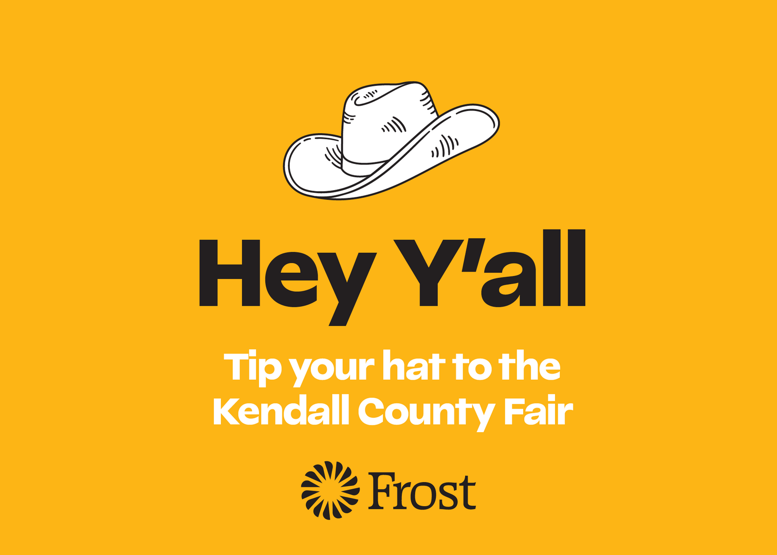 Hey, y’all! It’s time for the Kendall County Fair, which means we’re cooking something up. Join Frost for a Chuck Wagon Breakfast at the Kendall County Fairgrounds Pavilion. We’ll be serving scrambled eggs, sausage, biscuits, gravy, peach cobbler and coffee. Come on down and enjoy a delicious meal the only way Texans know how: full of friends, family and big appetites. This event is free and open to the public.
