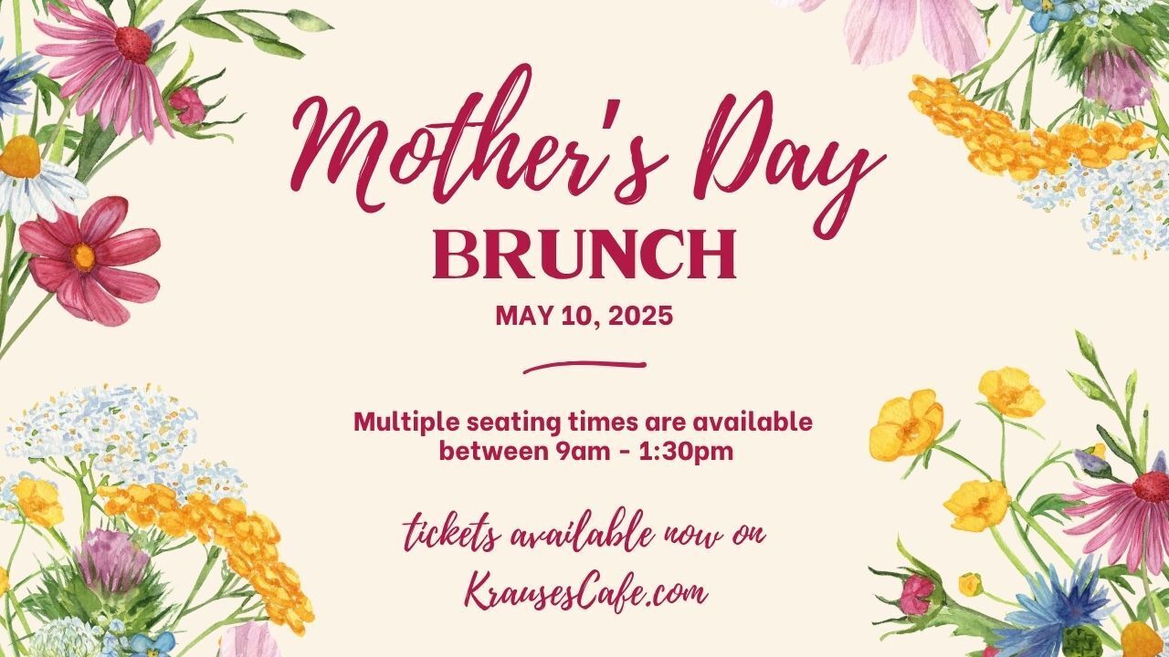 Sunday Brunch is a Mother’s Day tradition at Krause’s Cafe & Biergarten. Show Mom how much you appreciate everything she does by treating her to a special Mother’s Day Brunch filled with delicious food, great company, and a festive atmosphere. Enjoy a scrumptious brunch buffet featuring a variety of chef-prepared favorites, from hand-carved meats and classic breakfast dishes to fresh fruit and sweet treats, while live music from Jorge & Nicole fills the Biergarten. Grab your tickets now and make Mother’s Day one to remember at Krause’s
