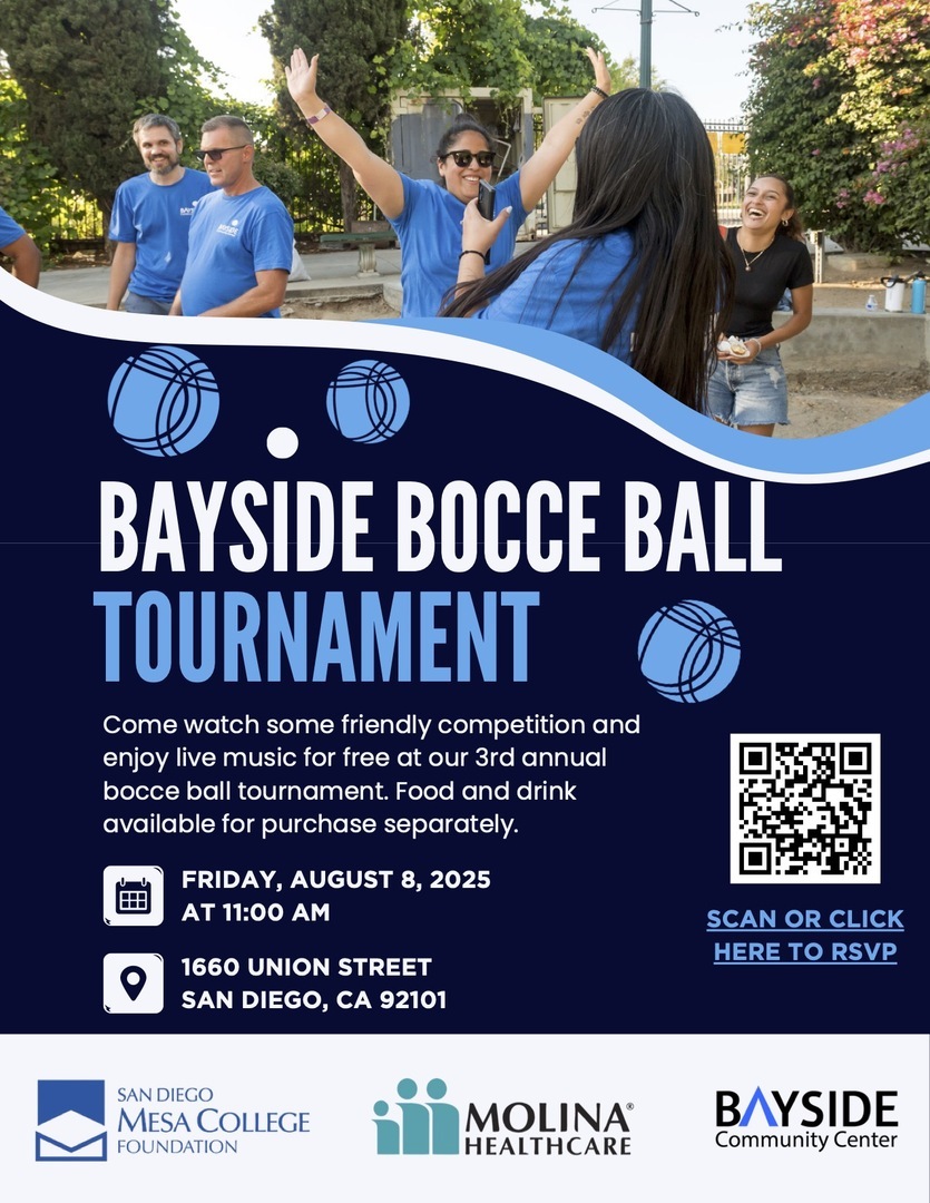Join us for an entertaining day of friendly competition and community celebration at Bayside’s 3rd Annual Bocce Ball Tournament! Grab your team of four players and get ready to showcase your skills or cheer on your favorite team at Amici Park in the heart of Little Italy on August 8, from 11AM to 4PM.