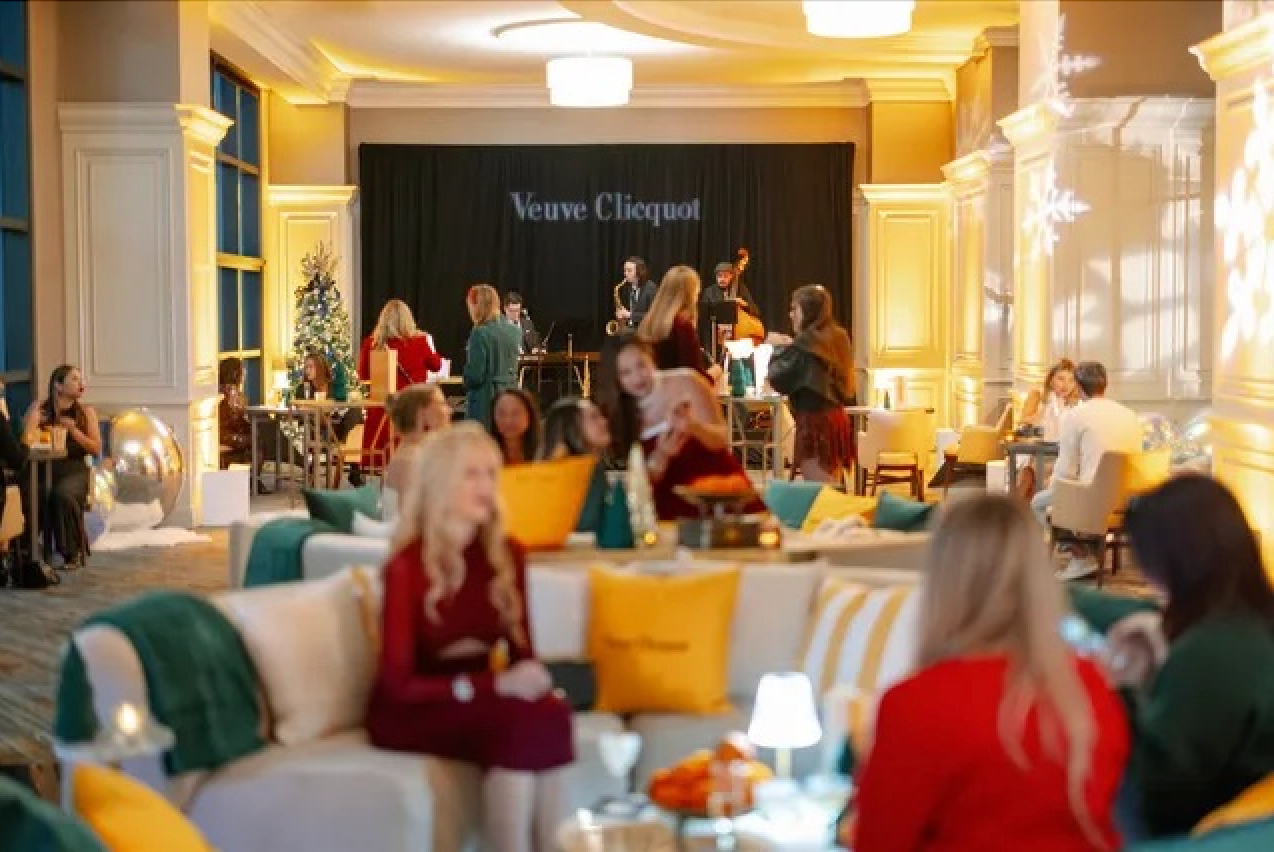 Elevate the season at Clicquot in the Clouds, an elegant lounge featuring Veuve Clicquot, created in partnership with Moët Hennessy and set high above the city on the 32nd floor of the Seaport Tower. For the first time, this normally private venue opens its doors to the public, transforming into a sparkling sanctuary with sweeping views of the skyline and bay.