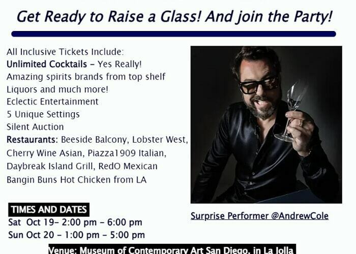 Cocktail Lovers & Bar Stars: Get Ready to Raise a Glass! And join the Party at the 15th San Diego Spirits Festival! The ultimate destination for cocktail lovers and spirits connoisseurs. Get ready to tantalize your taste buds at the San Diego Spirits Festival's signature two-day event! Unwind with a weekend of unlimited delicious drinks. Mingle with your favorite spirit brands and discover exciting new ones – over 65 in total! From high-end liquors to refreshing ready-to-drink cocktails and seltzers, there's something for everyone. Whiskey - Bourbon - Tequila - Mezcal - Vodka - Gin - Rum - Liqueurs - Ready to Drink (RTD) Surprise Performer announced: Andrew Cole All Inclusive Tickets Include: Over 65++ brands Unlimited Cocktails - Yes Really! Performers: Samba Dancers - Belly Dancers and more Flamenco Guitarist Jason Jenkins Artisanal bites from Restaurants - Beeside Balcony, Cherry Wine Asian, Piazza1909 , Lobster West , Day Break Ocean Grill, RedO Mexican and more being added 5 Unique Settings Silent Auction to benefit The National Food & Beverage Foundation