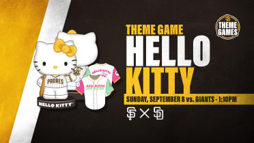 Celebrate Hello Kitty's 50th anniversary with the Padres and secure a Theme Game package with a limited-edition Hello Kitty Bobble, along with a ticket to the Giants vs. Padres game! Hello Kitty is donning the home pinstripes, but the Bobble has the option to wear a City Connect uniform!