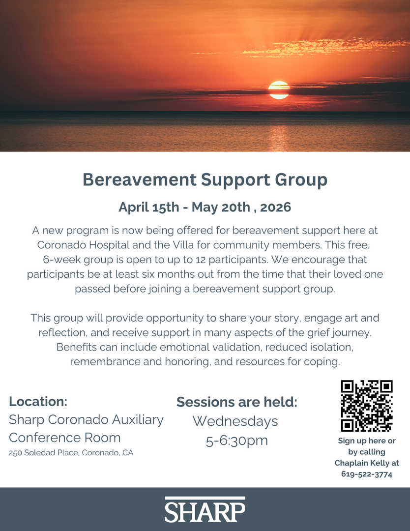 A new program is now being offered for bereavement support here at Coronado Hospital and the Villa for community members. This free,