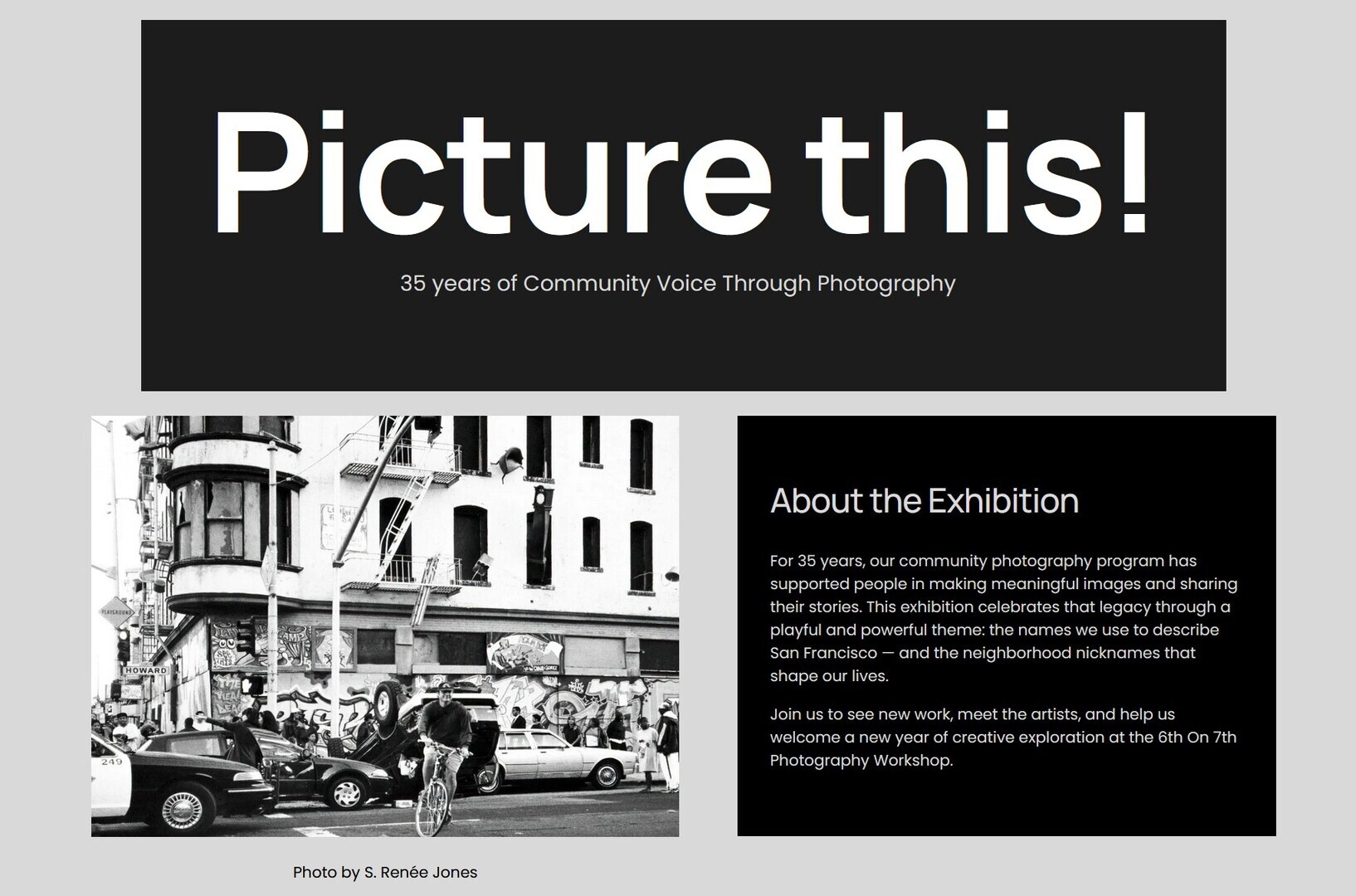 For 35 years, our community photography program has supported people in making meaningful images and sharing their stories. This exhibition celebrates that legacy through a playful and powerful theme: the names we use to describe San Francisco — and the neighborhood nicknames that shape our lives.