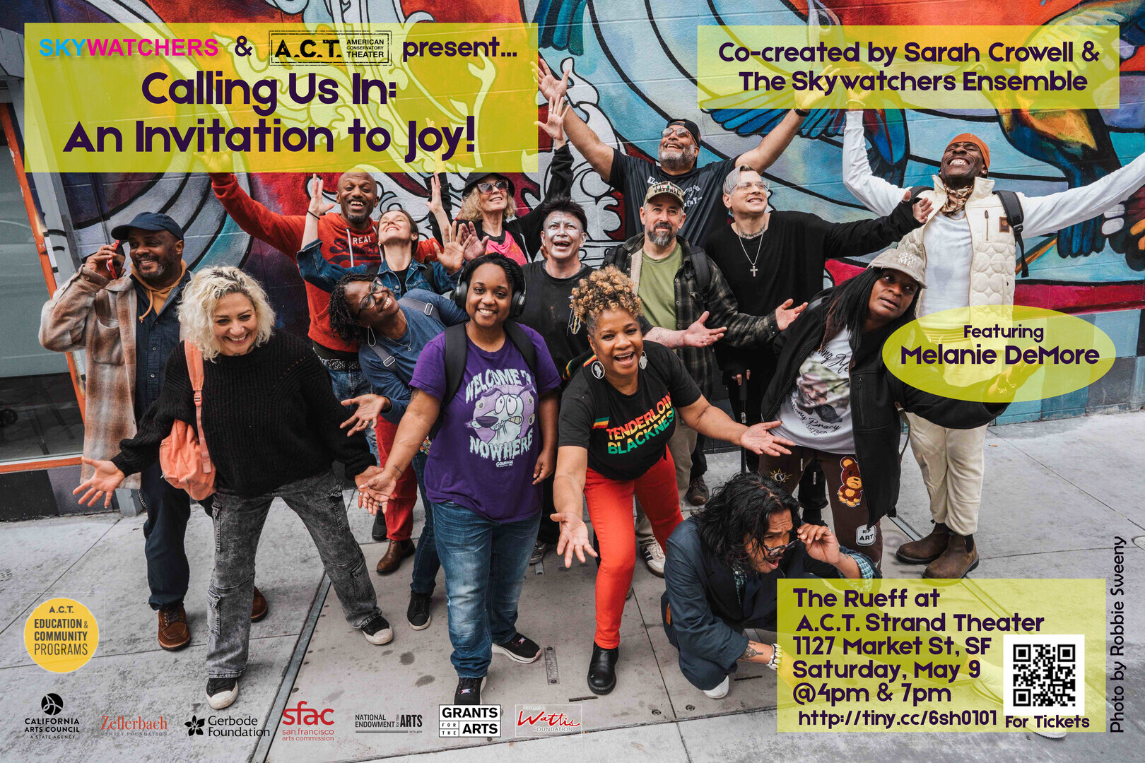 Calling Us In: An Invitation to Joy begins at a San Francisco Tenderloin bus stop, where a chorus of neighbors—each carrying the invisible “backpacks” of lived experience—wait for a ride toward healing, belonging, and transformation. From this shared starting point, the performance unfolds as a multidisciplinary journey blending theater, poetry, and movement, rooted in the collective stories of the Tenderloin community.