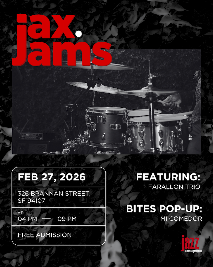 This concert is sponsored by Jazz in the Neighborhood, a Bay Area 501c3 nonprofit. Jazz in the Neighborhood works to improve the economics of jazz performance in the Bay Area by presenting affordable concerts, paying musicians a guaranteed wage, and supporting the work of established and aspiring jazz artists.