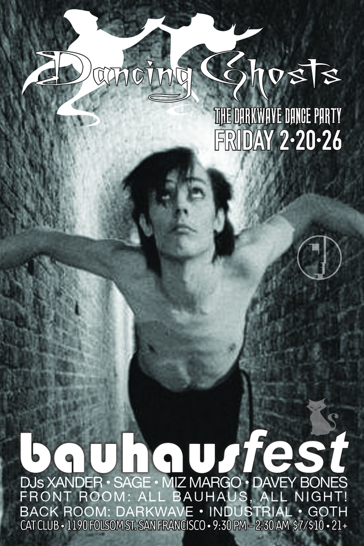 Friday February 20th join Dancing Ghosts, SF's Darkwave Dance Party, for the return of BAUHAUSFEST! A gathering of Bauhaus fans to celebrate the band’s legacy through music, visuals, and dancing! Play along and wear your favorite Bauhaus t-shirt or accessory!