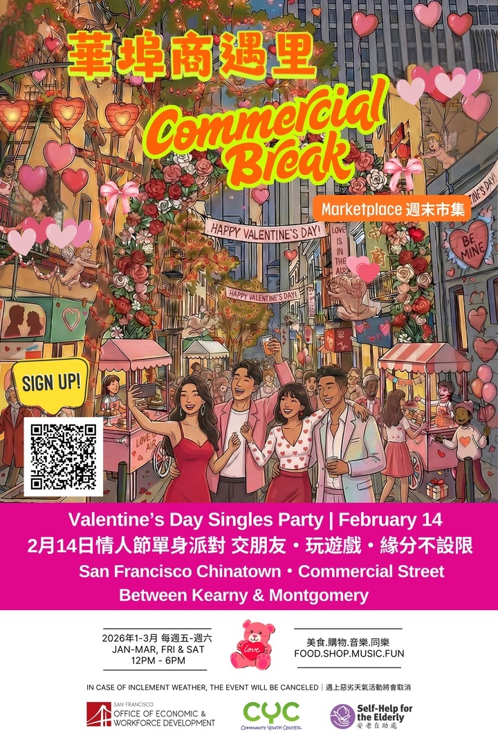 Come celebrate love, friendship, and good vibes at the Valentine’s Day Special Edition of the Chinatown Commercial Break Marketplace on Friday, February 14!