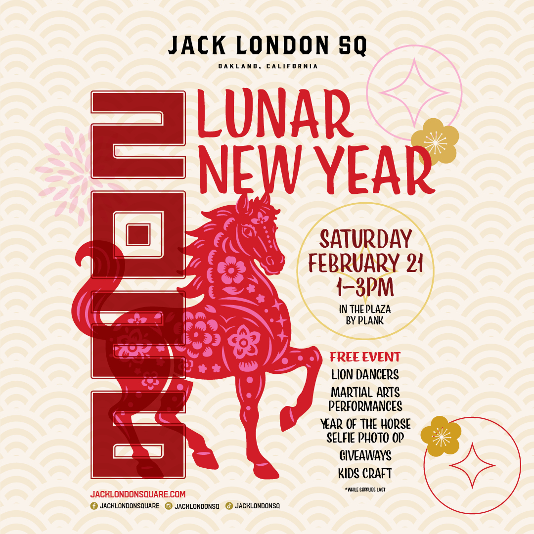 Jack London Square, one of the Bay Area’s top dining, recreation and commercial districts (www.jacklondonsquare.com), will ring in the Year of the Horse with a festive Lunar New Year celebration designed for guests of all ages, featuring live lion dancers, martial arts performances, themed photo opportunities and giveaways. As part of the family-friendly festivities, children are invited to participate in a special Lunar New Year–themed craft activity where they will create their own cherry blossom trees. The event offers a lively waterfront setting for guests to enjoy cultural performances and interactive experiences together. This event is free and open to the public; no pre-registration is required to attend. To learn more, visit https://bit.ly/4pTjC8Q. For information about other upcoming events at Jack London Square, visit www.jacklondonsquare.com/events.