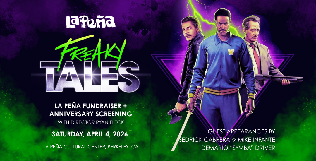 Starring Pedro Pascal and featuring East Bay legends including Tom Hanks, Too Short, Marshawn Lynch, and Angus Cloud, as well as local cast members Sedrick Cabrera, Demario "Symba" Driver, Freaky Tales brings together four fantastical tales that journey through real-life events and East Bay historic places –including La Peña Cultural Center!