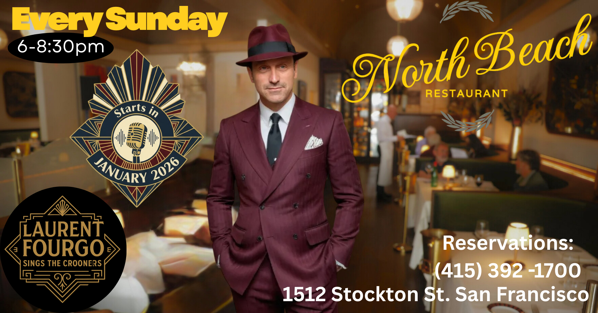 Starting a Sunday residency, Laurent Fourgo brings his smooth, timeless crooner style to the heart of San Francisco’s historic North Beach Restaurant!