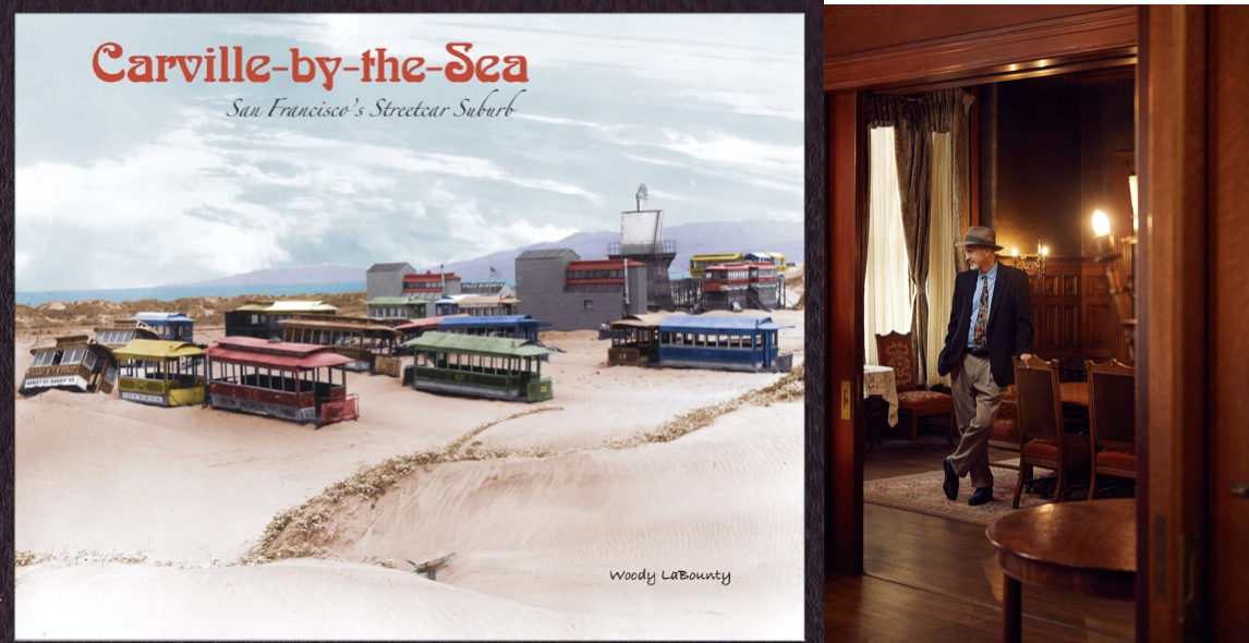 Carville-by-the-Sea: San Francisco’s Streetcar Suburb is a scrapbook history of one of the quirkiest communities ever imagined. On the empty sand dunes of the 1890s, San Francisco, bohemians, judges, lady bicyclists, and sand-bath-prescribing physicians transformed old transit cars into beachside cottages and clubhouses. Creative carpenters stacked obsolete horsecars, cable cars, and trolley cars into mansions and churches. Famous capitalists, writers, painters, and journalists visited Carville-by-the-Sea to work, play, and enjoy the “oddest village in the world.”