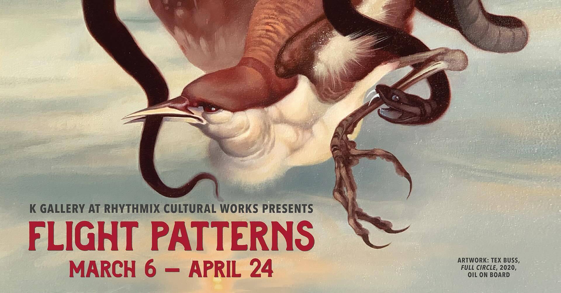 Flight Patterns celebrates the wonder of local birds through photography, drawing, painting, ceramic, print and mixed media. Curated by local birder, musician, writer Deborah Crooks, this exhibition features the work of Brice Binder, Laura (Tex) Buss, Jean Chen, Flavia Krasilchik, Rick Lewis, Mary Malec, Christopher Reiger and Dana Zed.