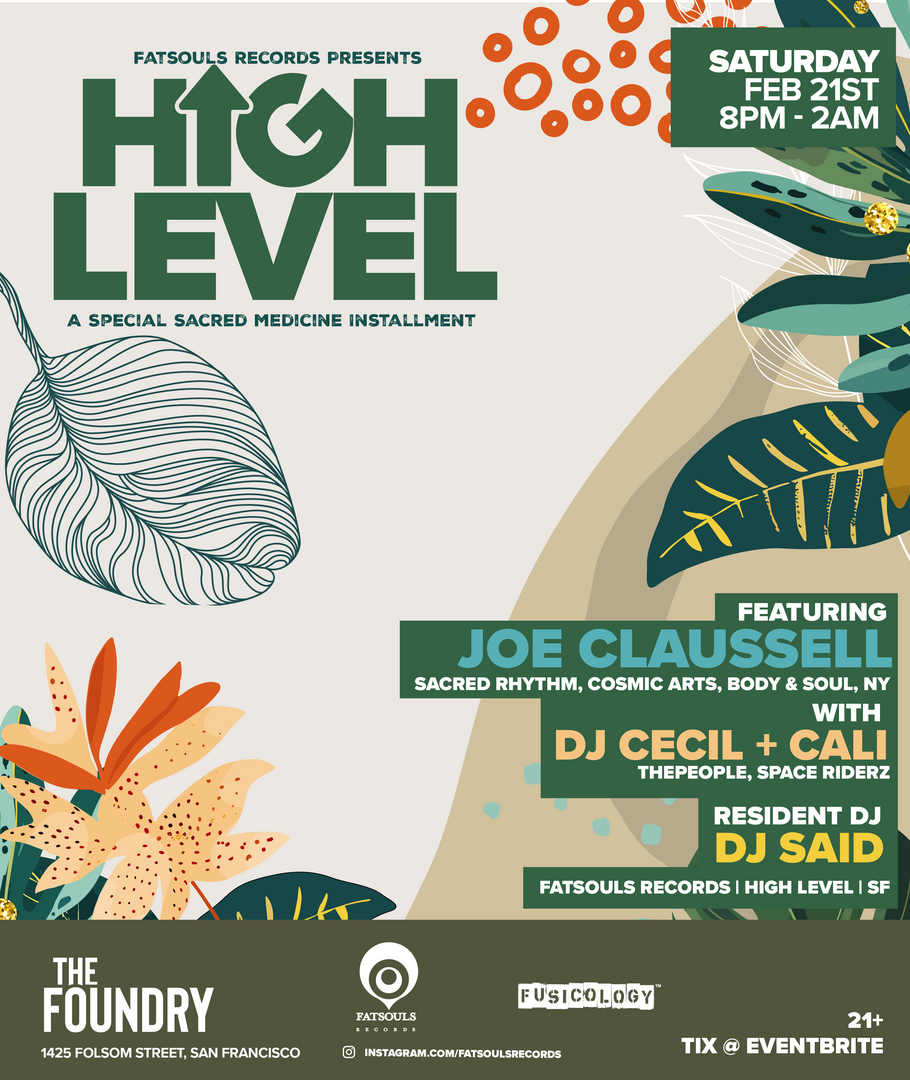 This year, we continue our mission to showcase the artists who have had a significant influence on the dance music scene. Join us as we present a special High Level installment featuring our brother Joaquin “Joe” Claussell with support from the amazing DJ Cecil + Cali (ThePeople, Space Riders) and resident DJ Said (Fatsouls Records, High Level, SF).