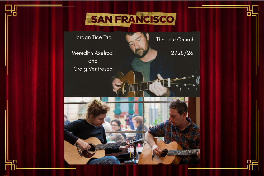 Meredith Axelrod and Craig Ventresco, described by Fretboard Journal as “one of the music world’s best kept secrets,” have a longtime partnership that captivates audiences the world over. During the pandemic, they transformed the kitchen of their San Francisco home into a stage, performing over 1500 daily livestream shows on Facebook, Youtube, and Instagram – which became a virtual gathering place in trying times. Their online “tip jar” has sustained them through the lockdowns and beyond. Both multi instrumentalists, they share traditional and experimental, sometimes spontaneous, wild and heartfelt renditions of their staggeringly extensive repertoire of old pop songs from the dawn of the recording era, as well as some original songs, with fans around the globe.